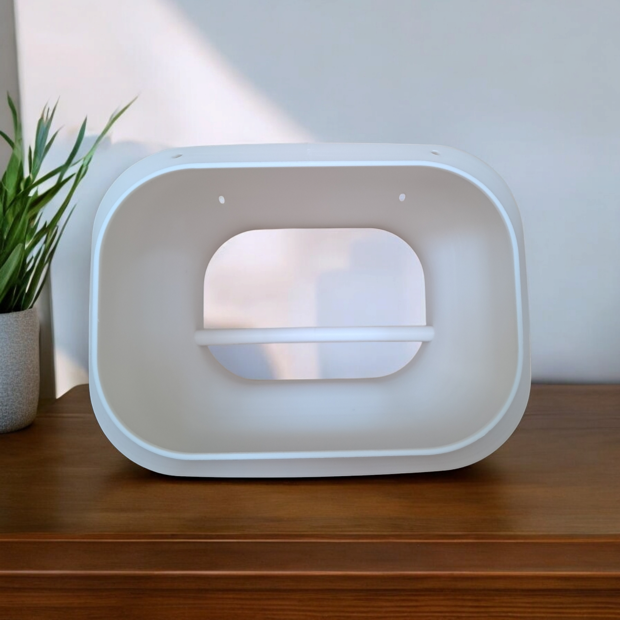 Abmessungen: 236 × 176 × 200 mm. Material: PLA (weiß). Die angegebene Farbe entspricht den Produktbildern. PLA ist einfach zu reinigen, aber gegenüber längerer Sonneneinstrahlung und hohen Temperaturen empfindlich; daher empfiehlt es sich, die Station nicht dauerhaft direkter, intensiver Sonne oder extremer Hitze auszusetzen.